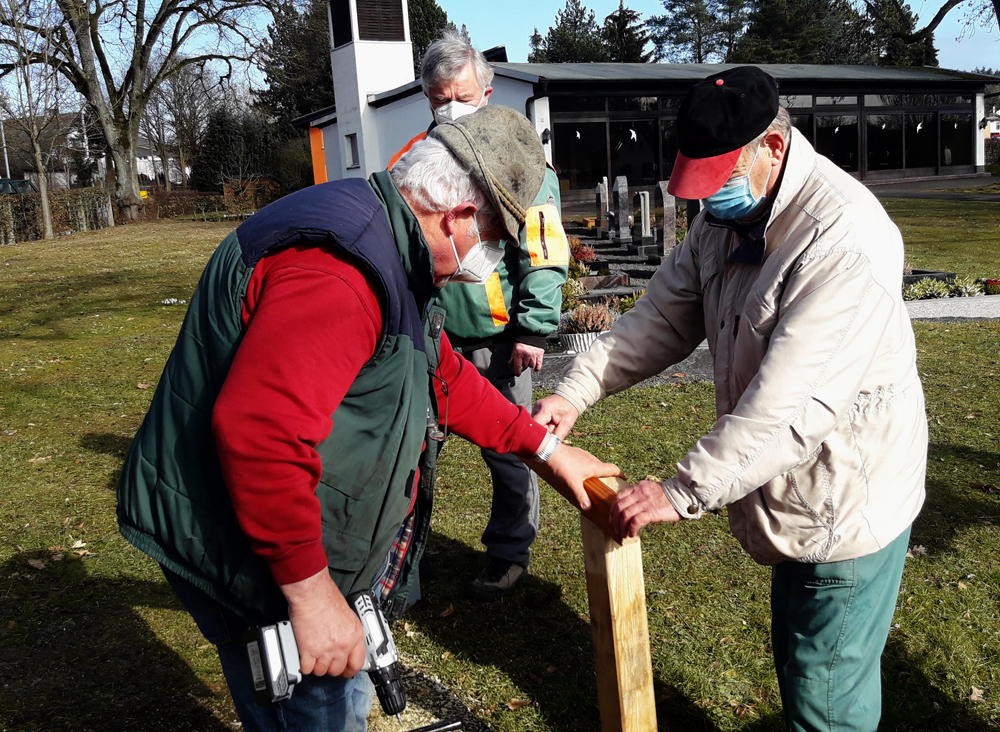 Nun haben Rudi Gerlach, Klaus Dexheimer und der Ortsvorsteher auf dem Friedhof in Fellingshausen in zweistündiger Arbeit eine Treppengeländer „in abgespeckter Form“ aus Holz errichtet – ganz nach dem Motto: „Es muss nicht immer viel Geld kosten“.