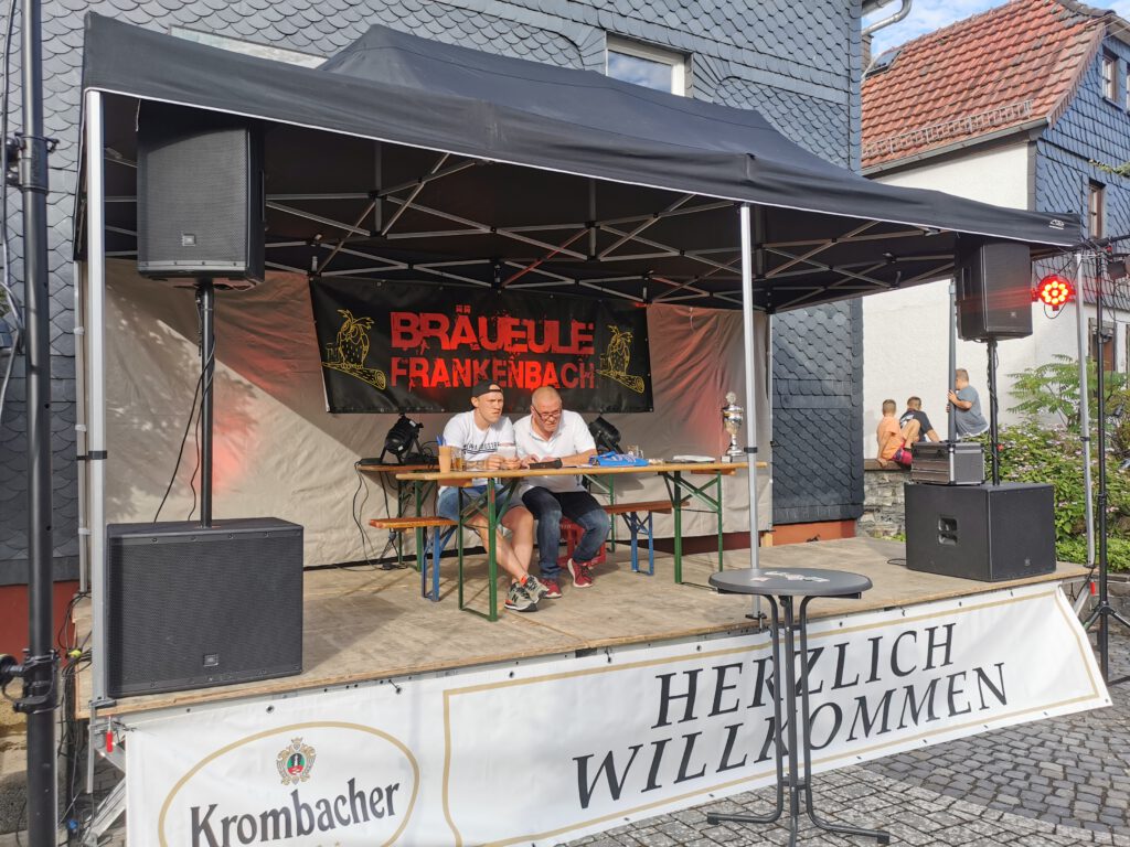 Dazu hatte die Bräueule Frankenbach 02 eingeladen. Das mittlerweile fest zum Jahresprogrammgehörende Turnier konnte endlich nach Coronapause wieder durchgeführt werden. An einem lauen Sommerabend hatten sich dazu 26 Würflerinnen und Würfler auf dem Brunnenplatz eingefunden, um den von Schreinermobil Ingo Mühlich gestifteten Wanderpokal zu gewinnen. Gewürfelt wurde in vier Fünfer-Gruppen und einer Sechser- Gruppe. Nach jedem Spiel wurden die Mitspieler neu ausgelost. Die ersten vier gewannen Geldpreise, alle anderen bekamen Sachpreise. Der Letzte bekam wie immer einen Würfelbecher, um fürs nächste Jahr zu üben.