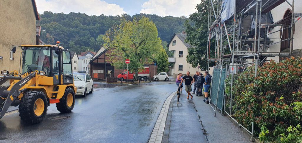 Die Straße vom Regen frisch gereinigt – warten auf Material