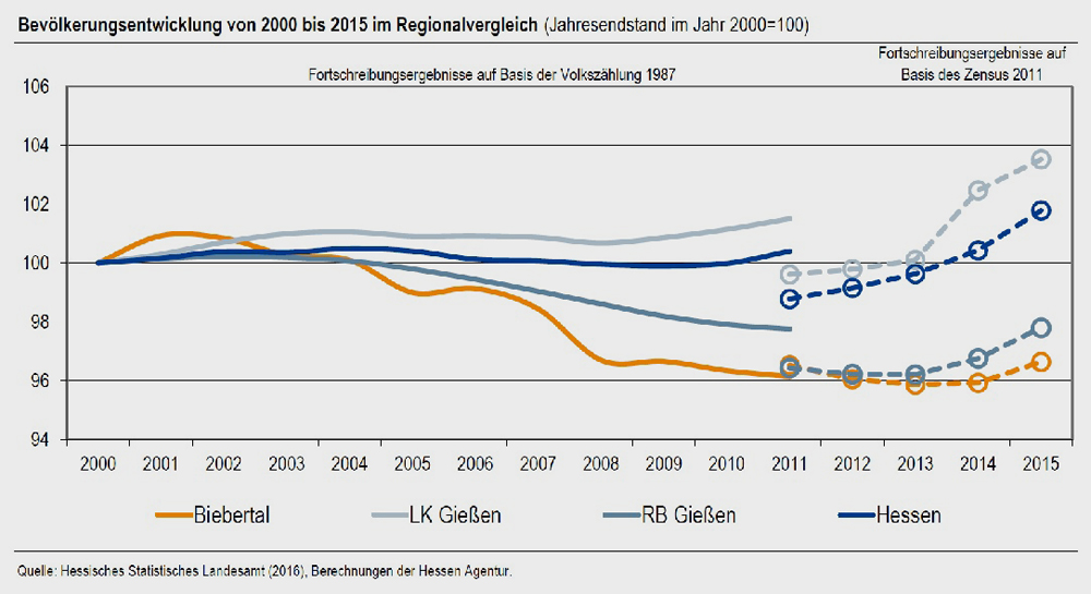 2016: 10350 = 229 Einwohner pro Km² (Deutschland 232, Hessen 297; kleinste Mecklenburg-VP 69,