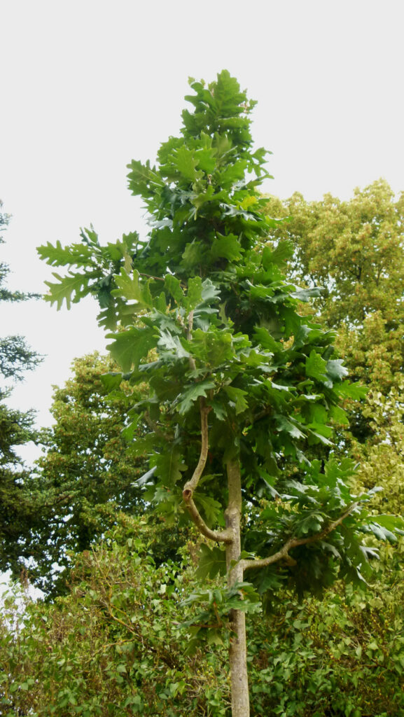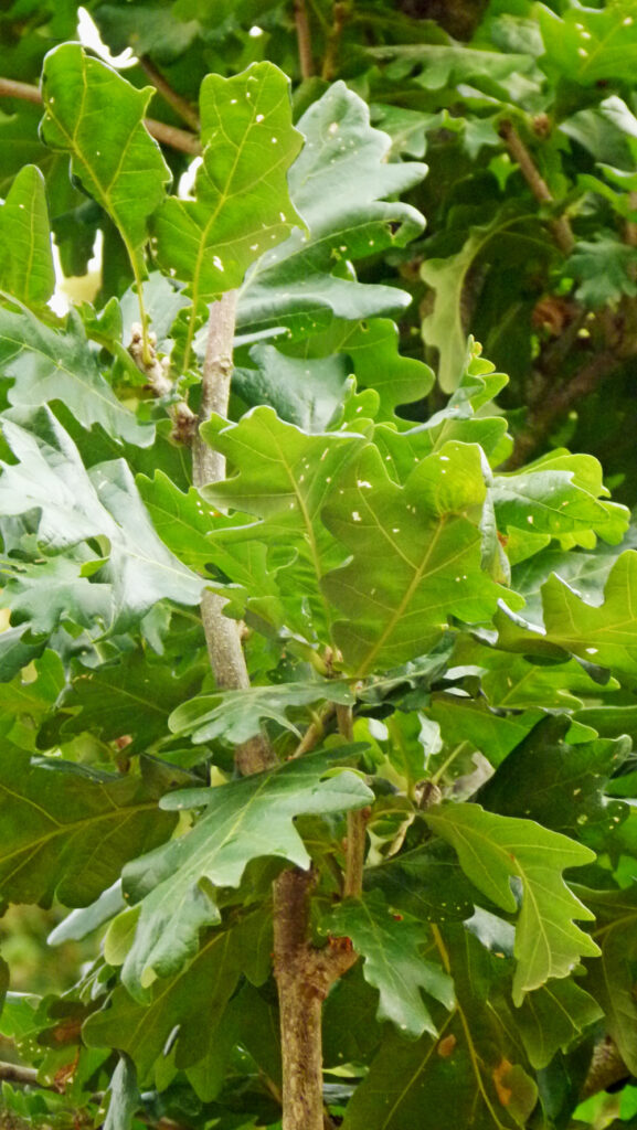 Diese Eiche hat ihre Heimat in Italien, auf dem Balkan und nördlich bis Ungarn und Rumänien. Ich weiß so gut wie gar nichts über sie und muss mich daher auf fremde Texte beziehen. Oleg Polunin schreibt dazu: Großer Baum bis 30m mit wollig behaarten Trieben, großen Knospen mit ausdauernden Nebenblättern und großen, auffällig tief gelappten (siehe Foto links, oben links), 10-20cm langen Blättern. Blattspreite mit 7-9 und oft mehr Lappen, unterseits behaart, am Übergang in den sehr kurzen Blattstiel geöhrt. die Fruchtbecherschuppen sind länglich stumpf, behaart, sich locker überdeckend.