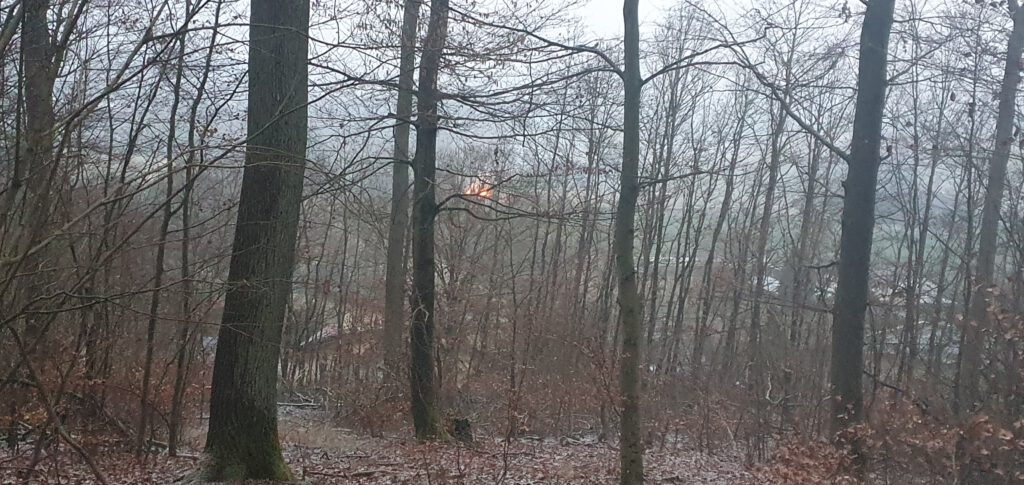 Abends gehe ich mit unserem Hund im Wald oberhalb von Fellingshausen spazieren und bleibe plötzlich erschrocken stehen. Es brennt! …