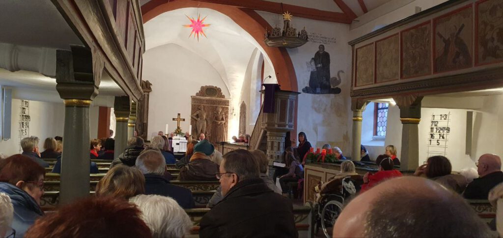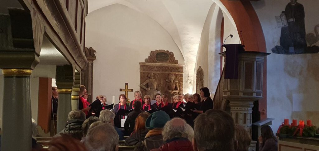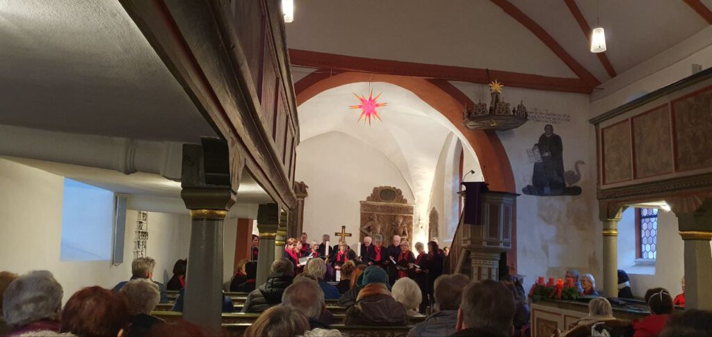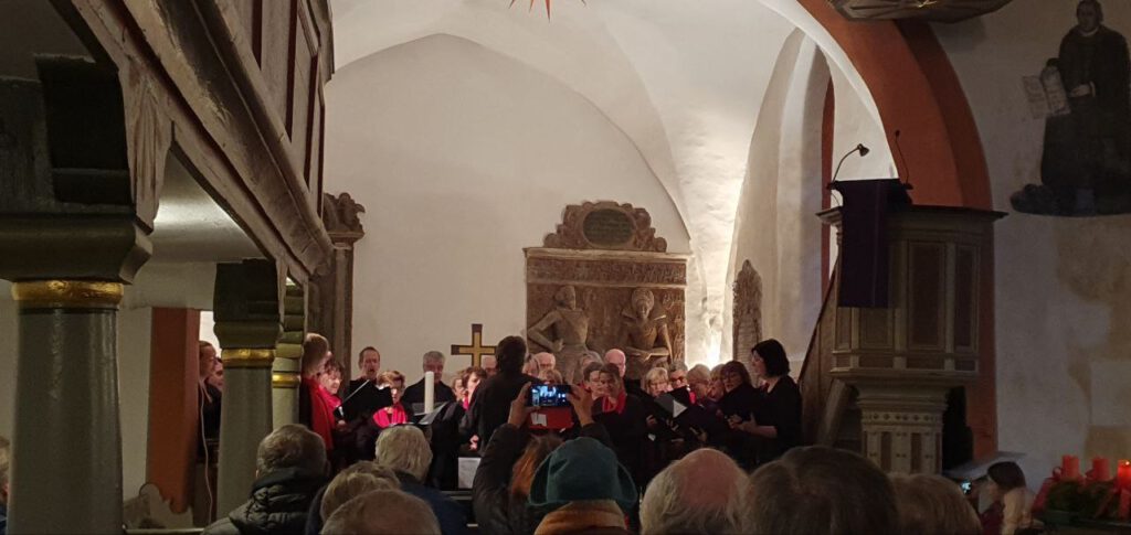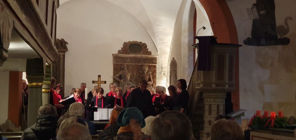Zusammen mit dem Publikum sangen der gemischte Chor mit Sing & Swing, begleitet vom Chorleiter Rainer Geitl an der Orgel, „Macht hoch die Tür, die Tor macht weit“.