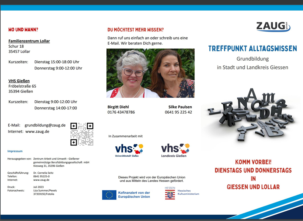 Wir waren am 2. September auf dem Sommerfest der VHS Gießen und kamen ins Gespräch mit der Programmbereichsleiterin für Deutsch als Fremdsprache Sabine Giesick. In diesem Halbjahr bietet die VHS Gießen ein offenes und kostenfreies Lernangebot „Alphabetisierung für Erwachsene“ mit drei verschiedenen Kursen an. Die Maßnahme ist gefördert und läuft seit Juni 2023 bis Dezember 2023. Da es sich um ein offenes Angebot handelt, kann man auch jetzt noch jederzeit einsteigen.