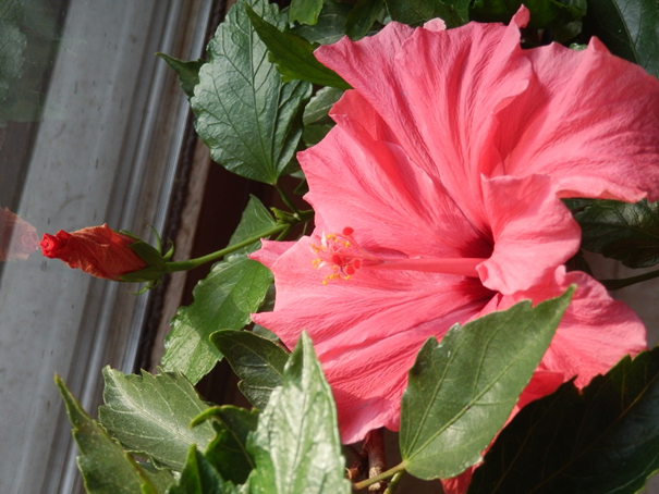 Mein Jüngster ist der Hibiskus. Ich schenkte ihn 1995 meinem Mann für sein Büro, als er eine neue Stelle antrat. Der Hibiscus hatte im Büro einen sehr hellen, aber nicht übermäßig warmen Platz und blühte ganzjährig. Bei mir blüht er nur im Frühjahr und im Herbst. Er liebt nach den letzten Blüten einen kräftigen Rückschnitt und möchte im Sommer regelmäßig gedüngt werden. Wer ihn nach den Eisheiligen ins Freie stellt, sollte den hellsten u n d wärmsten Platz wählen.