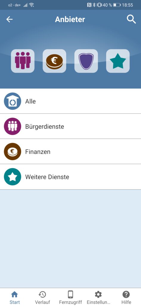In dem Menüpunkt „Anbieter“ werden die Anbieter kategorisiert. Noch sind es nicht viele, allerdings wird es durch die Digitalisierung der Ämter immer weiter wachsen. Wie im Bericht in der Dorfzeitung vom 19.02.2022 bekannt gegeben wurde, kann man ja jetzt auch sein Führerschein online beantragen.