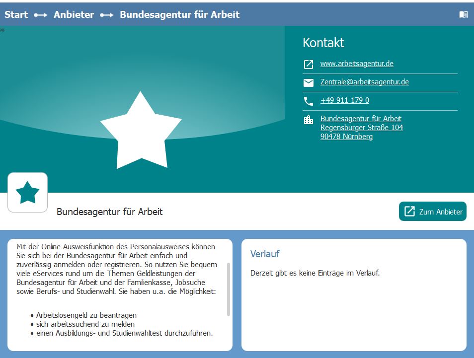 Dort kann man sich mit der AusweisApp2 anmelden oder registrieren und so z. B. ganz bequem Geldleistungen beantragen wie Arbeitslosengeld. Zudem kann man sich arbeitssuchend melden oder einen Ausbildung- und Studienwahltest durchführen. Das Angebot wird laut Anbieter stetig erweitert.