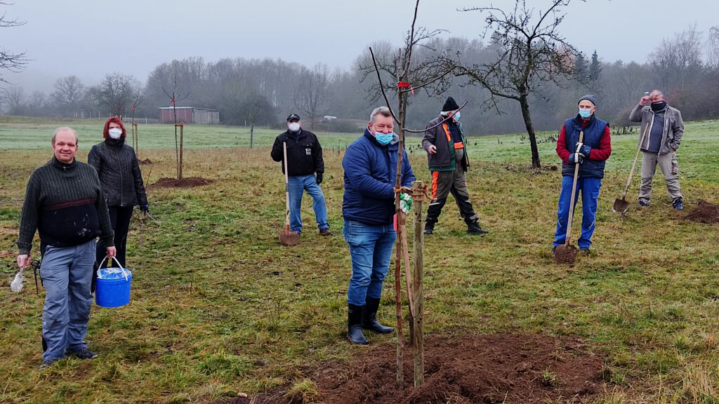 Am Samstag, 12.12.2020, wurden kurzfristig noch 14 Obstbäume in Frankenbach gepflanzt. Die Naturschutzflächen „Niesenberg“ und „Eulergrund“ dienen als Ausgleichsmaßnahme für die Gemeinde Biebertal. Die 14 Obstbäume wurden unter Anleitung und mit tatkräftiger Unterstützung von Gärtnermeister Georg Hager vom Obst und Gartenbauverein Rodheim, fachmännisch von der Vereinsgemeinschaft Frankenbach in den Boden gebracht. Natürlich fand dieser unabdingbare Arbeitseinsatz unter strengen Hygieneregeln statt. Die Vereinsgemeinschaft freut sich mit dieser Aktion die Gemeinde Biebertal unterstützt zu haben.