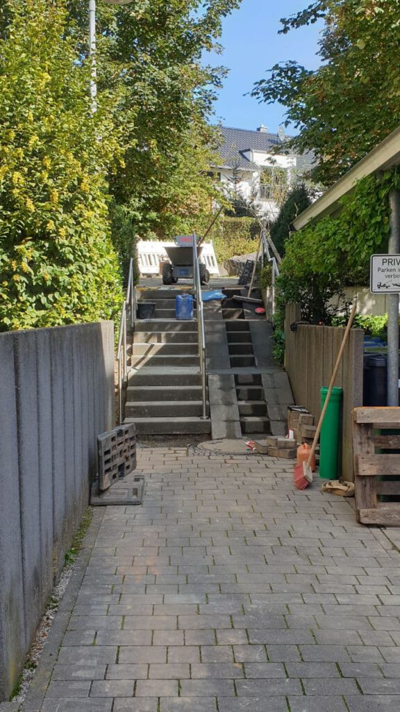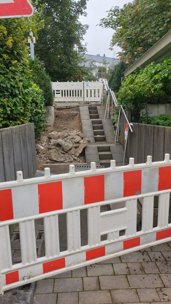 Was da genau gebuddelt wird, dies kann ich nicht sagen, Nur, dass die Bauarbeiter die Treppe neu gemacht haben. Warum, gute frage, gelle? Für mich als Laie war die Treppe Ok. Aber, der Auftraggeber wird schon seine Gründe gehabt haben.