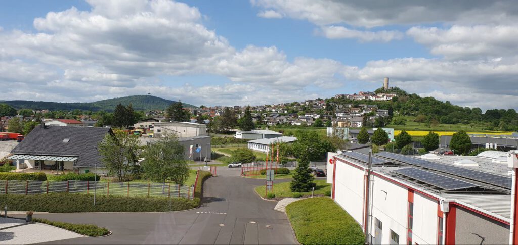 Blick aus der 2. Etage der Firma ORION auf Biebertal und seine markanten Landmarken.