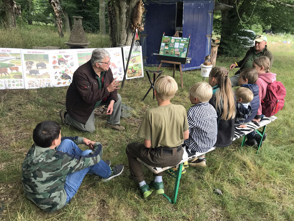 „Es ist gut, wenn sich die Jäger in den Naturschutz einschalten. Sie bringen ein hohes Maß an Fachkompetenz, aber auch eine große Liebe für die heimische Natur und ihre Tierwelt mit“, unterstrich Dieter Mackenrodt bei der Begrüßung. „Die Ferienspielaktion entzündet Neugierde für die fantastische Welt der Flora, Fauna und ihrer wildlebenden Tiere“, so der Gastgeber vor herrlicher Kulisse des Hofgutes.