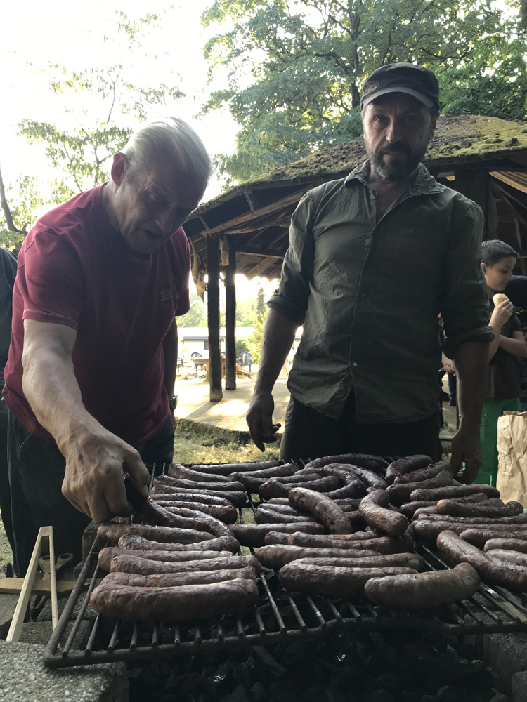 Am Holzkohlegrill versorgten die „Grillmeister“ Heinz Pfeffer und David Barcklow die 80-köpfige Personenschar mit leckeren Wildbratwürsten und kühlen Getränken.