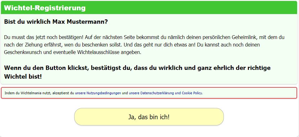 Im 2. Schritt muss die Anmeldung bestätigt werden. Dazu einfach auf das Feld “ Ja das bin ich “ klicken.
