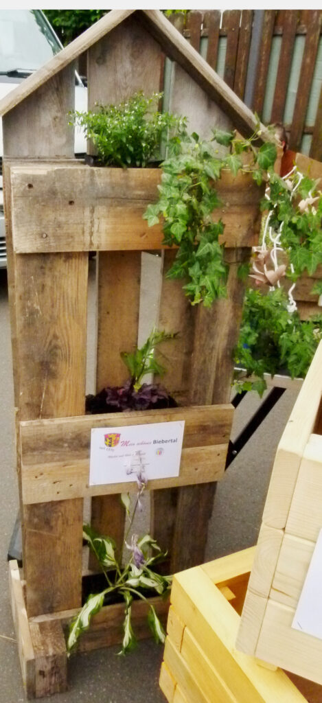 Wie kürzlich bei „Veranstaltungen“ angekündigt, fand am Donnerstag den 9. Juli auf dem Fellingshäuser Wochenmarkt und im Beisein von Bürgermeisterin Ortmann die Verteilung der Blumenkisten statt, die von den Jugendlichen der Sonnenstraßen GmbH zum 50jährigen Jubilärum Biebertals geschreinert worden waren. Wie die folgenden Fotos zeigen, gab es nicht nur solide Kisten aus schönem Holz, sondern auch originelle Pflanzgefäße aus Paletten. Etliche fanden den Weg zu neuen Standorten, z.B. auch in die Kitas in Rodheim und in Krumbach.