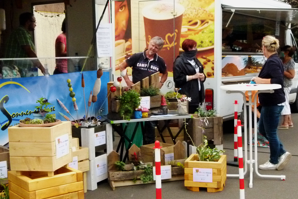 Auf dem Wochenmarkt wurden 20 Blumenkisten an PatInnen vorwiegend aus Fellingshausen, Krumbach und Bieber ausgegeben. Mehr sind während der Öffnungszeiten im Rathaus Biebertal in Rodheim zu bekommen. Zwei weitere Anlaufstellen in Königsberg und Vetzberg wären schön.