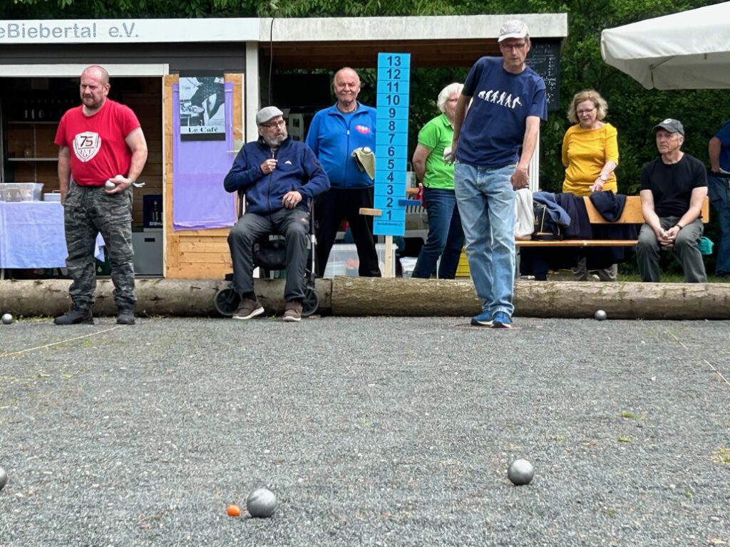 Wieder gab es volle Spielbahnen auf dem Bouleplatz am Bürgerhaus Bieber. Hier hatte der Verein Boulebiebertal Organisation und Verpflegung des Auftakt-Turniers zur Boule-Freizeitliga Mittelhessen übernommen. In diesem Format wetteifern jährlich acht Mannschaften von Mai bis Oktober um Sieg und Platz. Diesmal spielten 35Teilnehmer in drei Runden gegeneinander, wobei nach jeder Runde neue Teams ausgelost wurden.