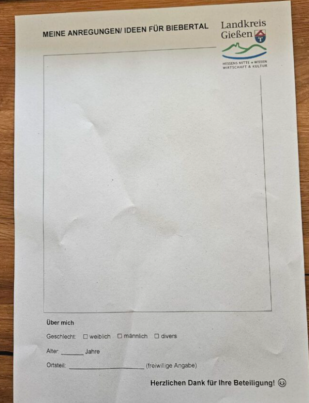 Zunächst im Rathaus, später an verschiedene Orten in der Gemeinde wandernd, können Bürgerinnen und Bürger ihre Anregungen und Bedarfe für Projekte und Hilfen im Ehrenamt in Biebertal einbringen.