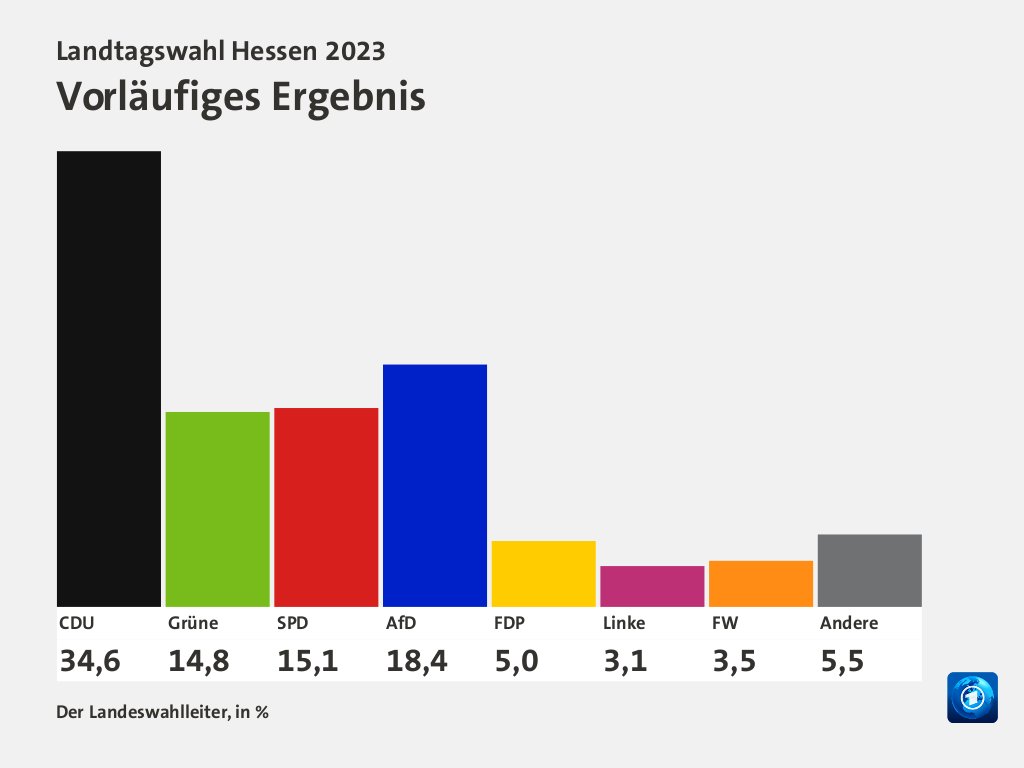 Neben der Bürgermeisterin wurde auch der hessische Landtag neu gewählt. Klarer Sieger sind hier die CDU und die AFD. Die Linke wie die Freien Wähler haben es nicht geschafft, in den Landtag einzuziehen. Knapp drin ist dagegen die FDP. Somit besteht der Hessische Landtag die kommenden 5 Jahren aus 5 Parteien. Als Direktkandidat hat Frederik Bouffier, Sohn des früheren hessischen Ministerpräsidenten Volker Bouffier, bei uns gewonnen. Gratulation auch an dieser Stelle.