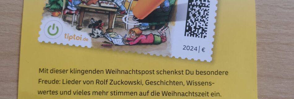 Etwas ganz neues gibt es seit 2. November von der Post. In Zusammenarbeit mit Tiptoi von Ravensburger gibt es die erste musizierende Briefmarke im Wert von 85 Cent. (einfacher Standartbrief bis 20g). Aber was ist Tiptoi eigentlich? Das könnt ihr im Video von Ravensburger erfahren: Zurück zur Briefmarke. Dort erklingen dann Lieder von Rolf Zuckowski, …