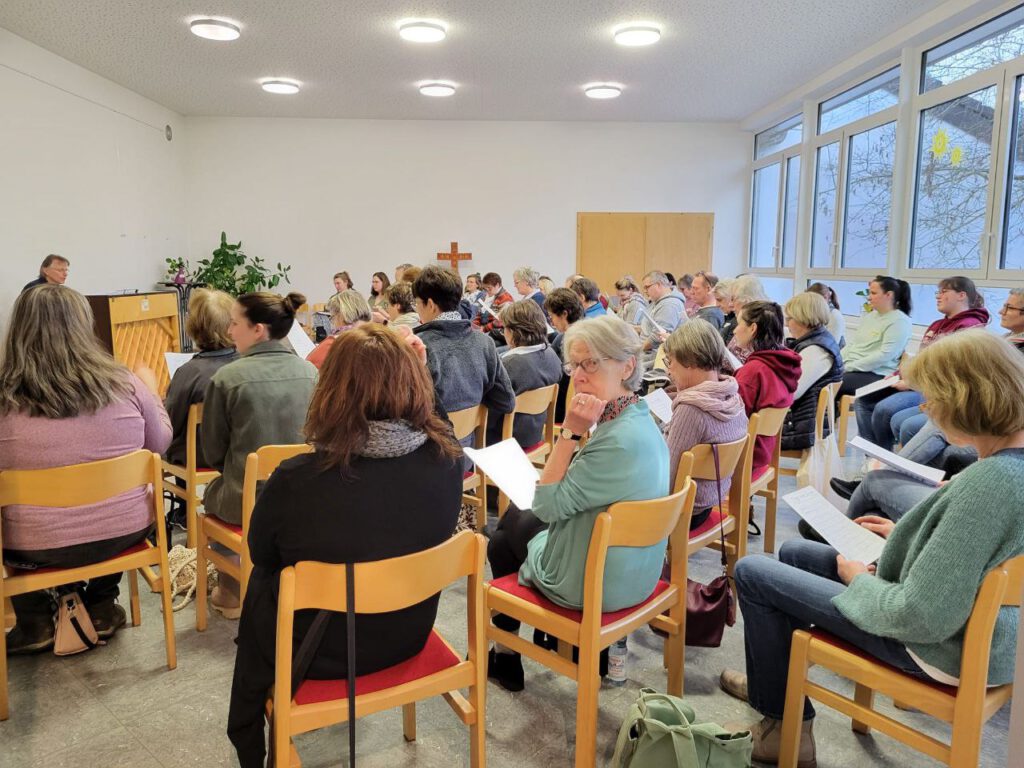 Bei der 2. Chorprobe unter der Leitung von Rainer Geitl am 28. Januar im Haus der Evangelischen Gemeinschaft am Bornweg 7 in Rodheim waren es dann sogar 47 Aktive – 34 Frauen und 13 Männern.