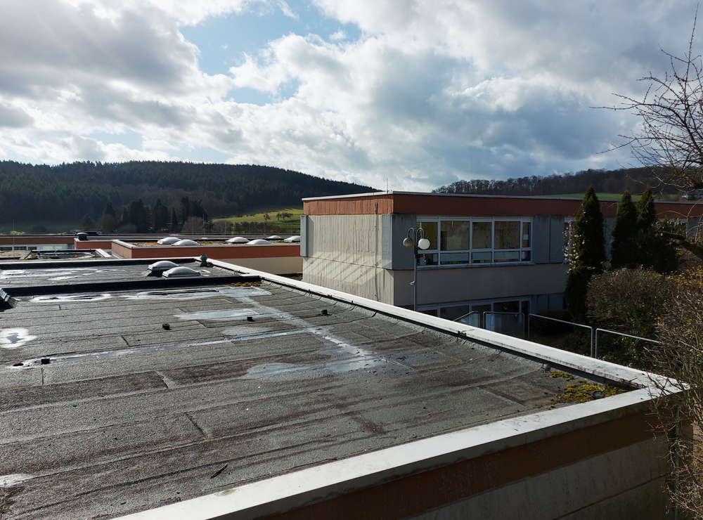Das stand im Gießener Anzeiger vom 14. 02. 2022: Um die Dächer auf zwei Gebäuden wasserdicht zu machen, werden 714.000€ bereit gestellt. Davon entfallen 362.000€ für ein Gebäude und die Außenfassade. Laut dem Artikel wurde auf einem kleinen Dach das Gefälle bereits beim Bau mangelhaft ausgeführt, so dass das Wasser auf dem Dach stehen bleibt, statt in den Dachgully abzufließen. Für das zweite Gebäude wurden 332.000€ eingeplant.