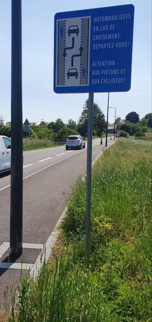 Aber auch in Frankreich – Nähe Barr im Elsass – sind innovative Wegeführungen für Fahrräder und Autos möglich: