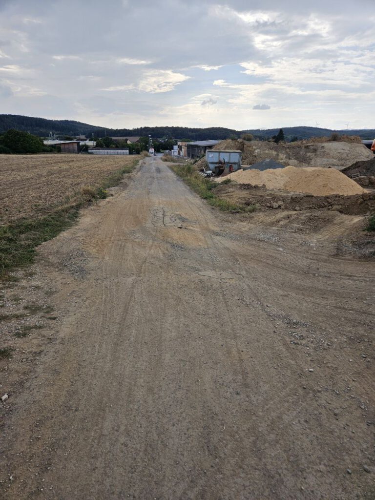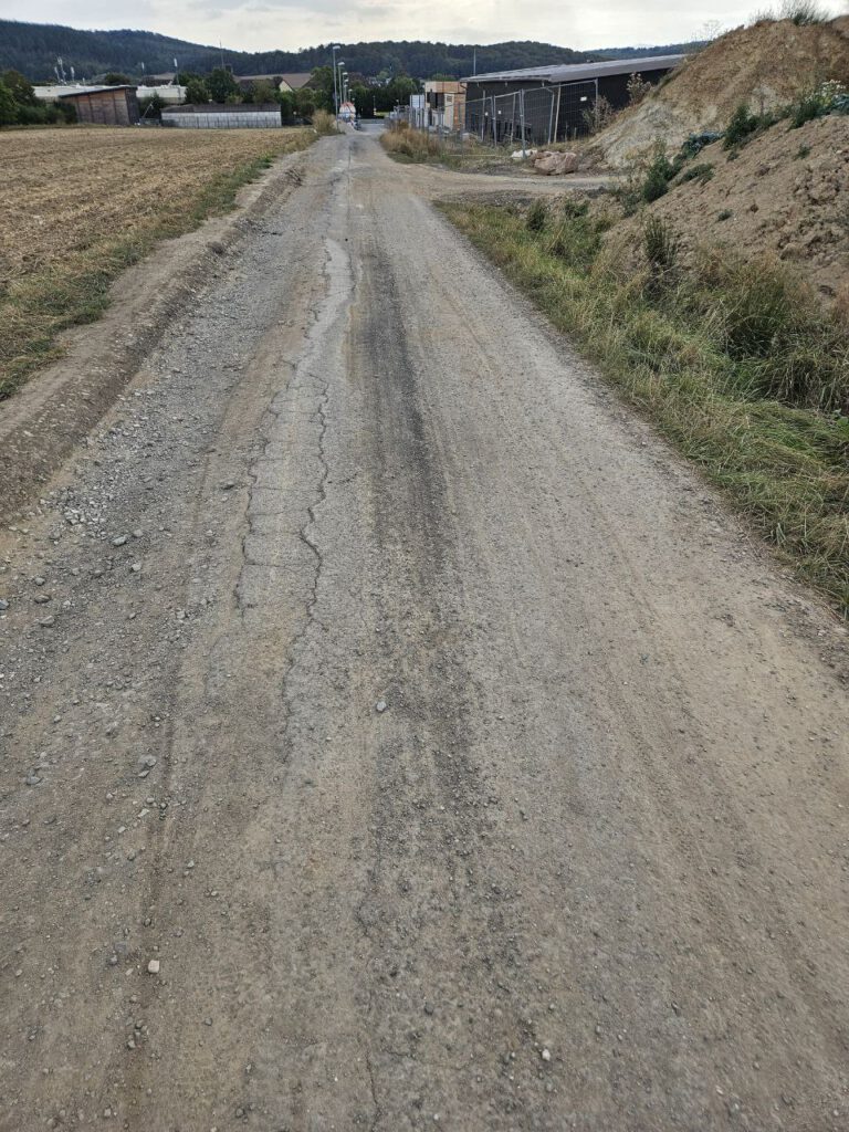 Inzwischen ist der Weg Richtung Heegstrauch von Lastern verschmutzt und kaputtgefahren.