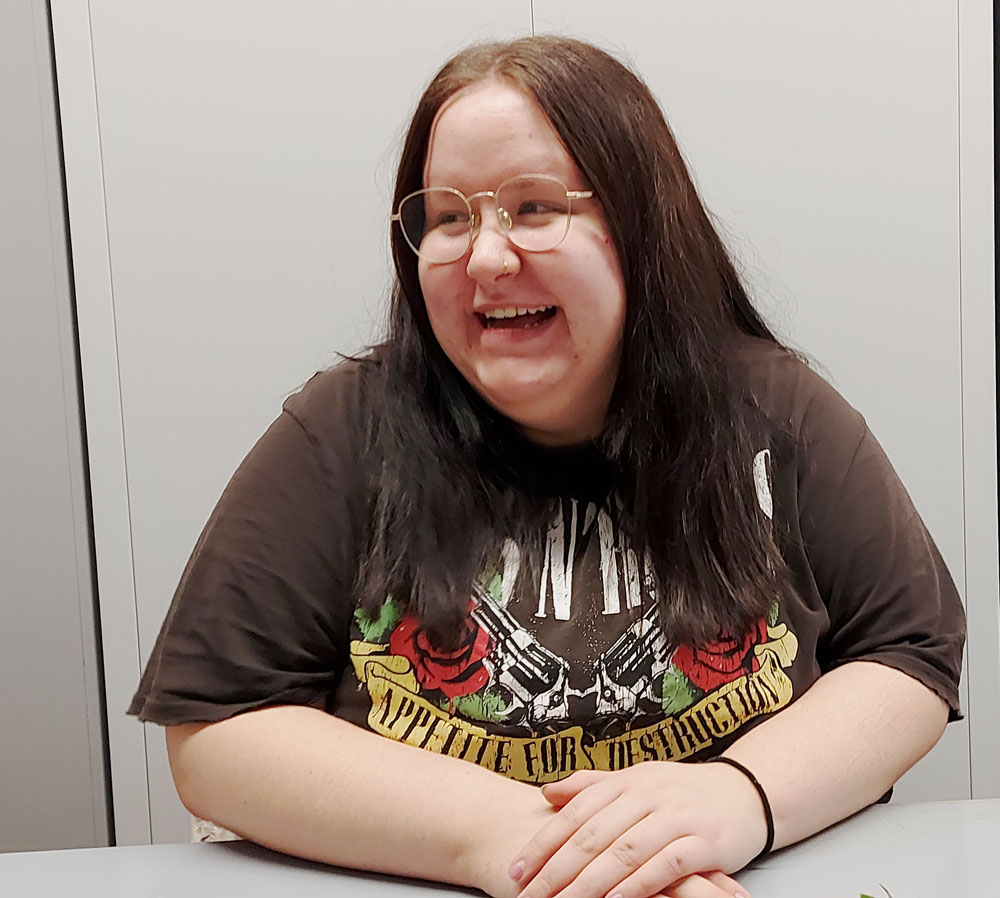 Ich bin 19 Jahre. Bei Evenius lebe ich seit drei Jahren und bin zurzeit in der Aktivierungsgruppe. Ich schreibe seit 2020. Aber in der Gruppe wurde ich besonders dazu angeregt. Früher habe ich auch viel gelesen. Das Weihnachtsmärchen ist meine 15. Geschichte. Schon im vergangenen Jahr habe ich eine für den Basar geschrieben. Manchmal schreibe ich einfach was auf, was mir durch den Kopf geht, und manchmal etwas zu einem bestimmten Thema. Das finde ich aber schwieriger. Ich arbeite auch in den Werkstätten mit verschiedenen Materialien.