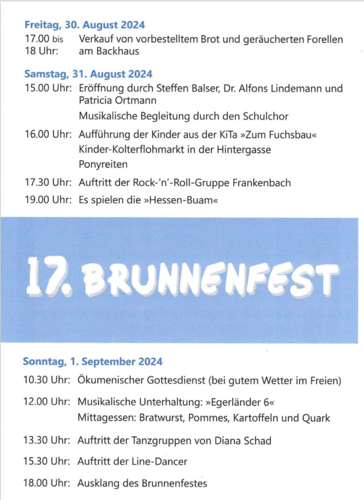 Wir hatten schon berichtet und Ablaufpläne vorgestellt. Nun ist er fertig, der Flyer und die Ankündigung der legendären Hessenbuam sowie der Egerländer 6, die das Fest hoffentlich wieder zu solche einem Erlebnis machen, wie wir es 2018 mit Tanz auf der Straße unter der Linde erleben durften.