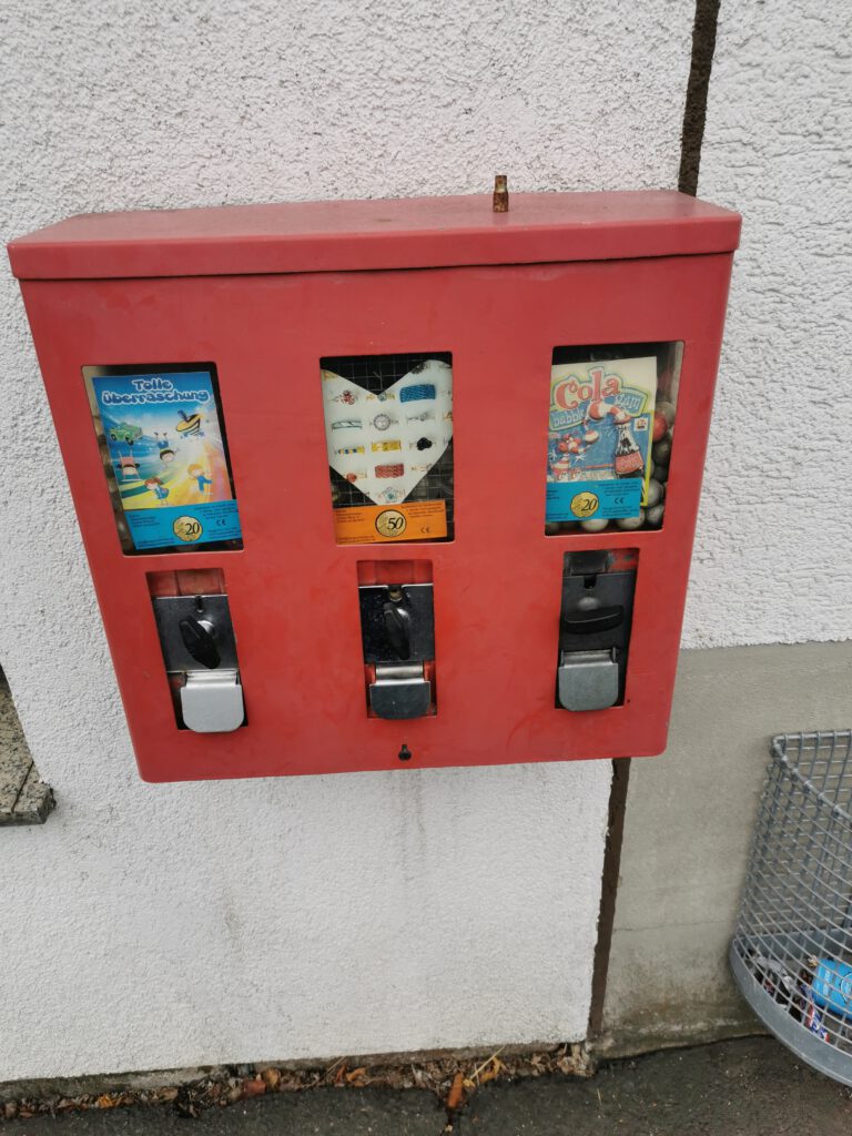 Ich selber habe früher gerne an diesen Automaten mein Taschengeld eingeworfen und die Kaugummis ohne Schutz gegessen oder auch mal Flummis gezogen. Gerade das drehen der Hebel hat fasziniert. Wenn dann noch die Klappe gefehlt hat und man die Hand davor halten musste oder ne ausgezeichnetes Reaktionsvermögen brauchte, war es ein Anziehungspunkt. Viele der heutigen Kids machen das wahrscheinlich immer noch.