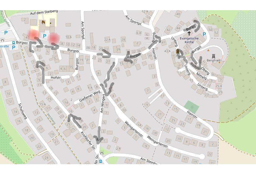 Gestartet wurde in der Burgstraße. Vor dort ging der Zug über die Ober- und Mittelgasse zurück auf die Burgstraße. Am Abzweig Am Wingert ging es dann Bergab und über die Krofdorfer Straße zurück um Ausgangspunkt in der Burgstraße.