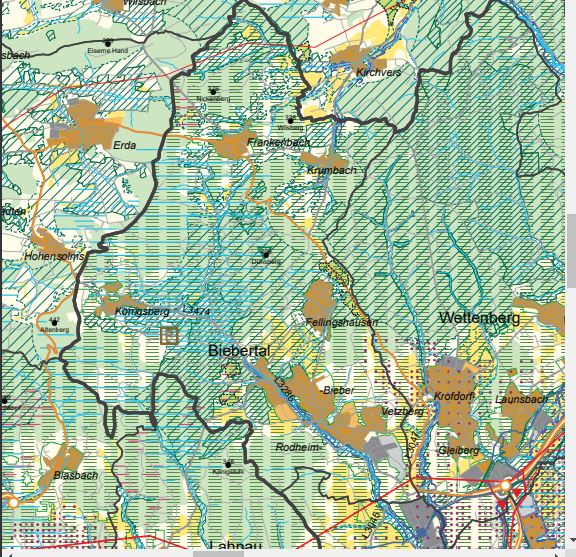 Wir vom Bilderbogen werden uns die Gebiete, die Biebertal betreffen genauer anschauen und natürlich hier im Bilderbogen darüber berichten. Zum Einstieg wollen wir hier erst einmal die Legende vergrößert darstellen. Dann muss man vielleicht nicht ständig hin und her scrollen auf der Karte.