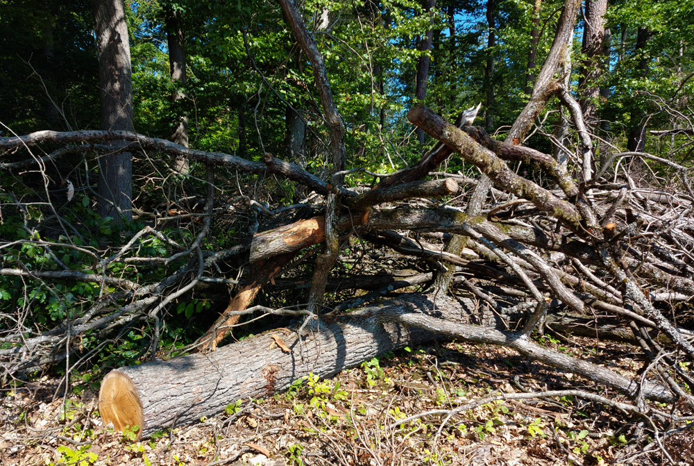 Es ist eigentlich sinnvoll, abgesägte Äste liegen zu lassen, da sie den Waldboden schützen. Ob das dieses Jahr auch gilt? Da Eiche einen recht guten Brennwert hat, fragen Sie doch mal nach bei Hessen-Forst, denn offiziell hieß es in diesem Jahr oft, es ist kein Brennholz da.
