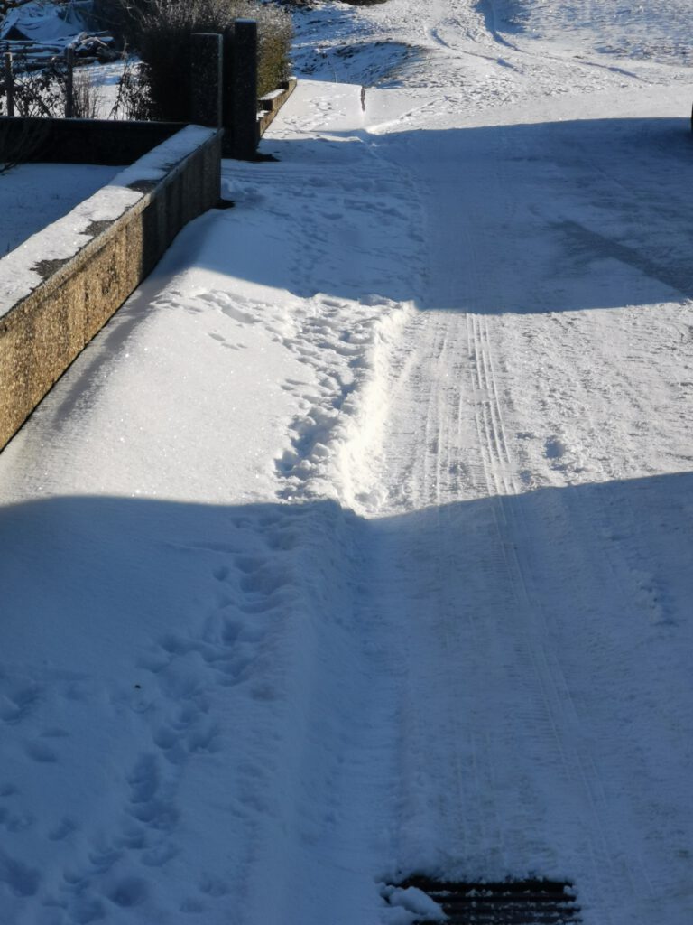Gerade wenn der Boden gefroren ist oder es vor dem Schnee Eisregen gab, ist eine geschlossene Schneedecke eindeutig besser zu begehen als geräumte Wege. Viele räumen zwar den Schnee, aber das Eis ist immer noch da.