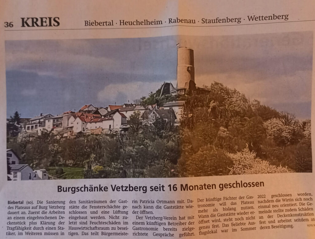 Einsendung von Gabriele Wölfl, der 1. Vorsitzenden des Vetzbergvereins