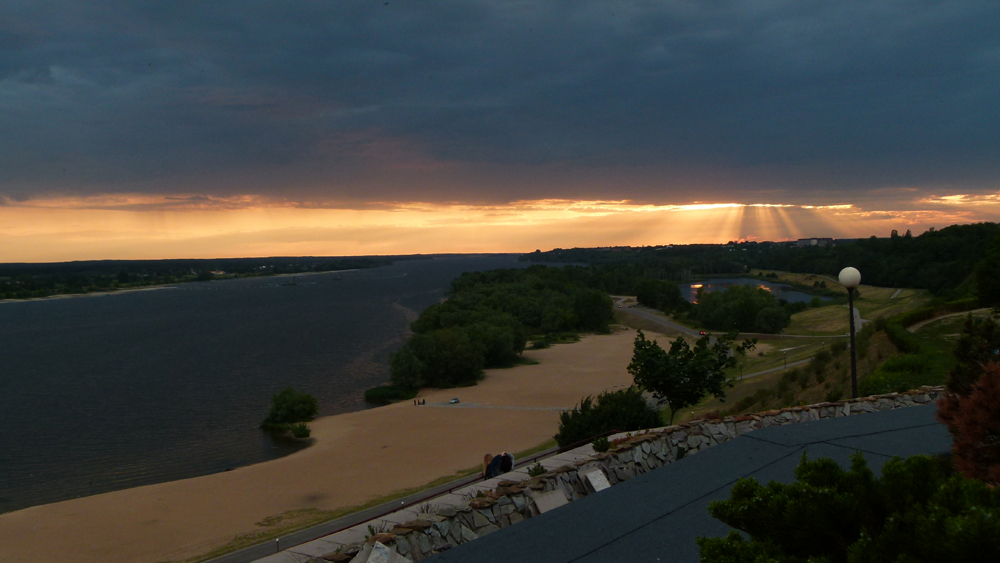 Während bei uns die Sonne heute erst um 5.12 aufgeht, so zeigt sie sich nördlich von Warschau schon um 4.16 Uhr. Wir hatten damals ein Hotelzimmer mit einem großen Erkerfenster, das genau nach Osten zeigte, unterhalb floss die Weichsel. Die Dämmerung begann schon gegen 2.50 Uhr. In Biebertal zeigt unser Schlafzimmer gen Westen, davor stehen hohe Sträucher. die Nacht scheint also viel länger zu sein.