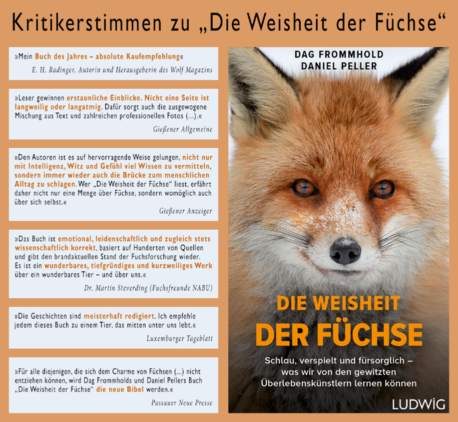 Doch für einen von ihnen hat der Fuchs eine ganz besondere Bedeutung: Daniel Peller befasst sich seit nunmehr 20 Jahren intensiv mit diesem Tier und bemüht sich um ein besseres Zusammenleben zwischen Mensch und Fuchs. Als Mitgründer des „Aktionsbündnis Fuchs“ (www.aktionsbuendnis-fuchs.de) – einer Initiative von inzwischen mehr als 70 deutschen Tier- und Naturschutzorganisationen, Prominenten und Politikern – setzt er sich für den Schutz von