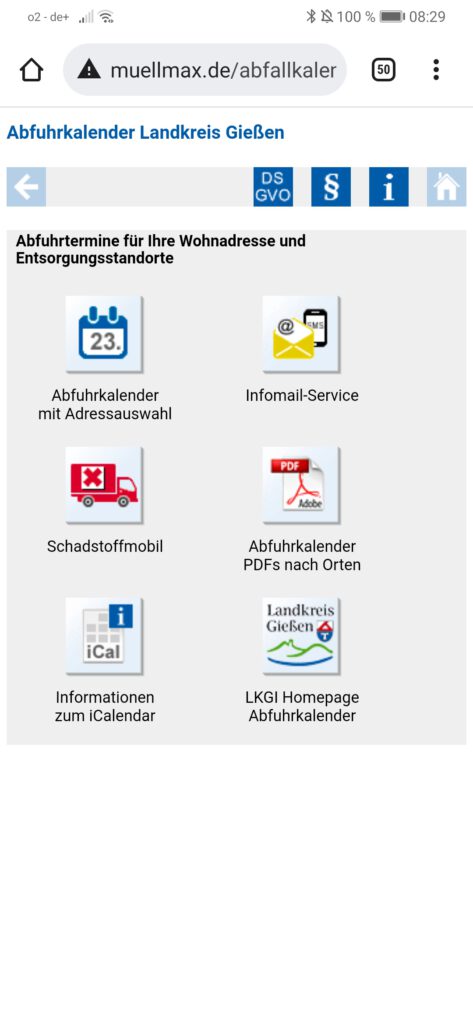 Als erstes müsst ihr zur Seite von muellmax.de gelangen. Dazu am besten auf den Link klicken oder unter Google nach Abfuhrkalender gießen 2022 googlen. Dort gelangt ihr auf diese Startseite.