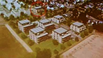 unten im Bild ein Entwurf der ursprünglich geplanten Mehrfamilienhausbebauung im unteren Teil des Baugebietes.