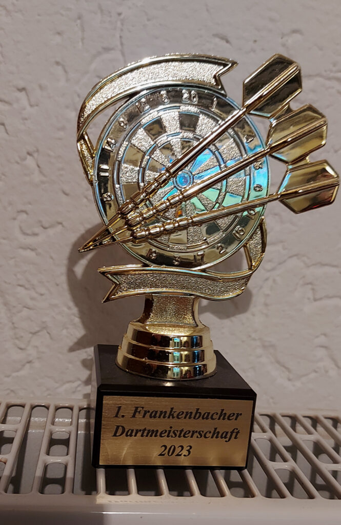 Daniel konnte mit der Finalteilnahme sein Startgeld verdoppeln. Achim Bernhardt komplettierte das Treppchen und bekam seinen Einsatz zurück. Die weiteren Platzierungen waren: 4. Marcel Wack, 5. Tobias Wack, 6. Christoph Haus, 7. Alexander Koch und 8. Thorsten Roeberg. Auch in 2024 wird es die Frankenbacher Darts-Open wieder geben. Der Termin steht schon mit dem 16.11.2024 fest.