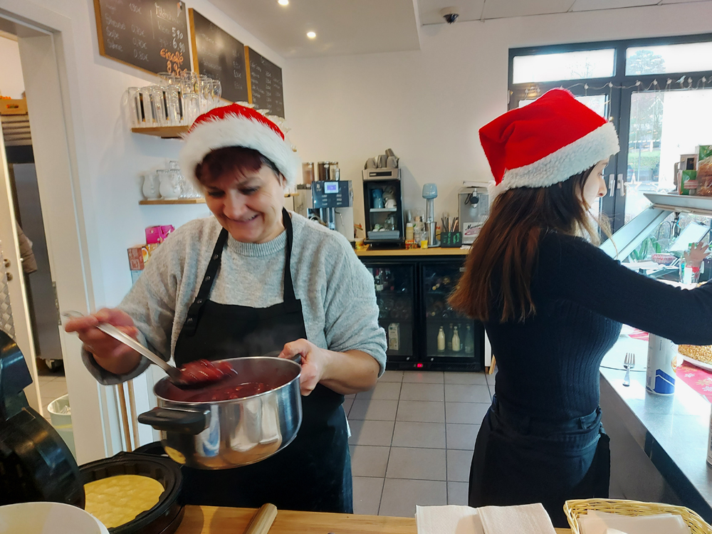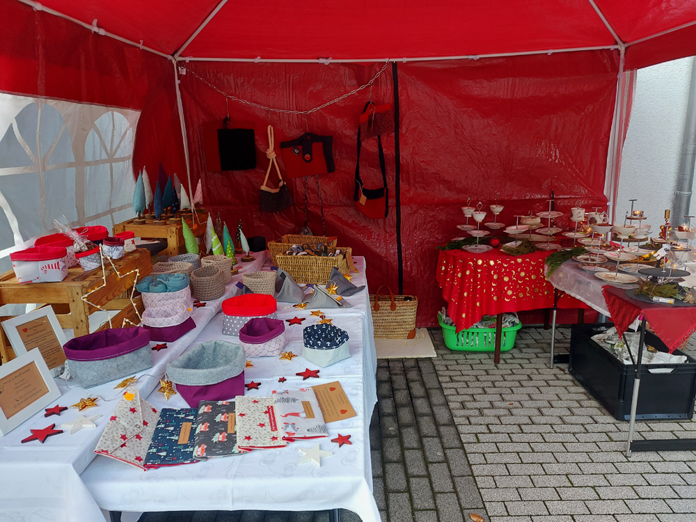 „Raum ist in der kleinsten Hütte“ dachte sich wohl Caterina Hufschild. So organisierte sie für den 2. Adventssonntag nicht nur ein ganz besonderes Essen sondern stellte zugleich ein paar Zelte auf, in der schöne Dinge aus der Werkstatt von Evenius sowie von zwei handarbeitenden Frauen aus Biebertal gekauft werden konnten.
