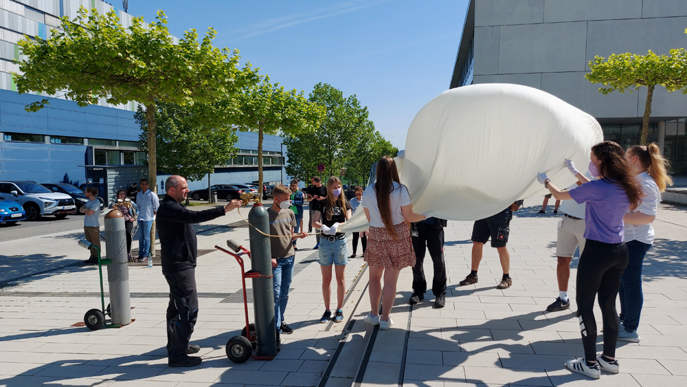 Sie erinnern sich? Am Mittwoch, den 18. Mai gegen 12 Uhr startete ein Helium-Ballon mit Experimenten von Studentinnen und Studenten der Universität Gießen Richtung Stratosphäre. Der Bilderbogen berichtete darüber. Und drei Stunden später sollte der Ballon wieder gelandet sein, nach einem vorgesehenen Platzen in etwa 36 km Höhe und einem Sinkflug mit einem Ziel etwa in der Region Friedberg. Die Gruppe wartete aber vergebens auf ein Si9nal des Ballons. Etwa 15 Uhr sollte die Landung erfolgen, gegen 16 Uhr wurde der Ballon als „verschollen“ gemeldet, Die Rückholer mussten unverrichteter Dinge zurückkehren.
