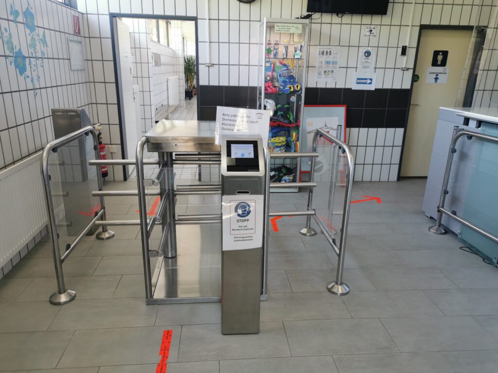 Im Ein- und Ausgangsbereich des Bades, sowie beim Betreten der Umkleiden besteht die Pflicht eines Mund-Nasen-Schutzes. Desinfektionsspender sind überall aufgestellt. Die Nutzung der Duschen und Sanitäranlagen ist nur für eine begrenzte Anzahlt Personen (gleichzeitiger Aufenthalt) erlaubt.