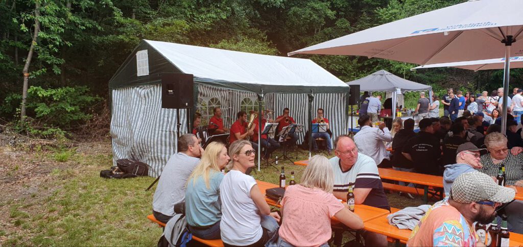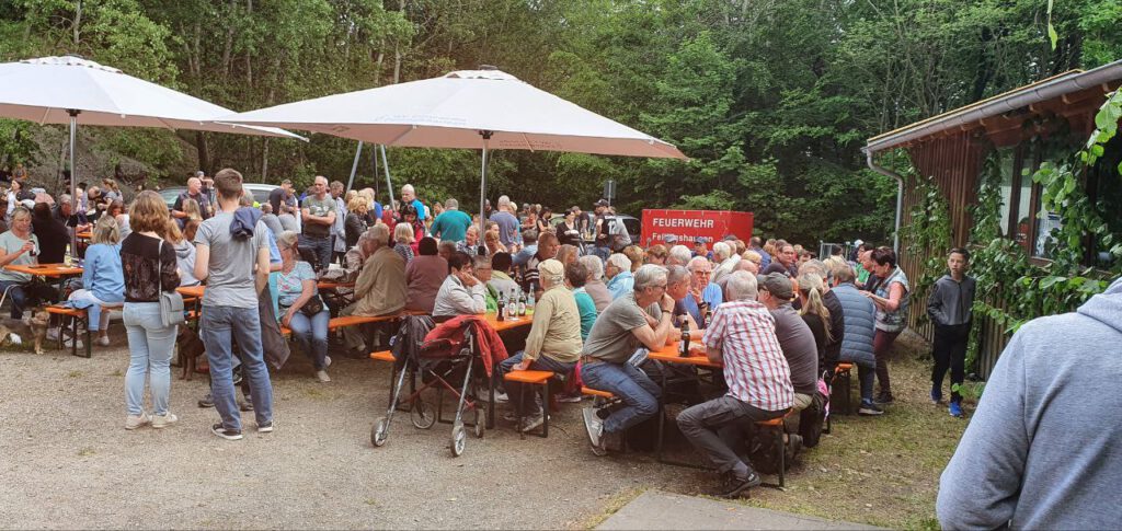 Diese Bilder aus dem Jahr 2022 nach der Coronapause zeigen, wie beliebt das Waldfest in der Bevölkerung ist, bei dem die Frauen und Männer der freiwilligen Feuerwehr Fellingshausen eigentlich alljährlich Musik organisieren, Suppen bereiten, Würstchen grillen, Kaffee und Kuchenspenden sammeln und Getränke verkaufen, Bänke, Zelte und anderes Equipment in die Sandkaute und zurück in das Feuerwehrgerätehaus schaffen und für Begegnungen, Miteinander und Geselligkeit in einem lebendigen Dorf sorgen.