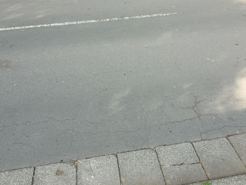Aber, lasst die Bilder „sprechen“. Ja, die Bilder sehen fast gleich aus. Sind sie aber nicht. Ich bin die Straße (Bürgersteig) langgegangen. Und, nun ja, es sind nun mal überall Risse. Mal kleiner mal Größer…Ich weiß auch. das ich schon geschrieben habe, schon wieder ne Baustelle…aber, hey, auf eine mehr oder weniger kommts jetzt auch nicht mehr an. Und, es könnte vielleicht auch billiger sein, endlich mal was richtig zu machen, als immer nur zu „Flicken“, oder?