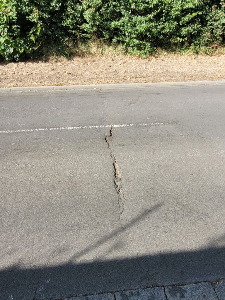 Ich denke, es wäre evtl. billiger mal die ganze Straße neu zu machen. Denn, die Risse sind vom Wäldchen Anfang bis fast zum Ende hin sichtbar. Das was dort gemacht wurde, hält sowieso nur ca. 6 bis 8 Monate. So wie in den Jahren zuvor.