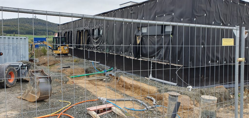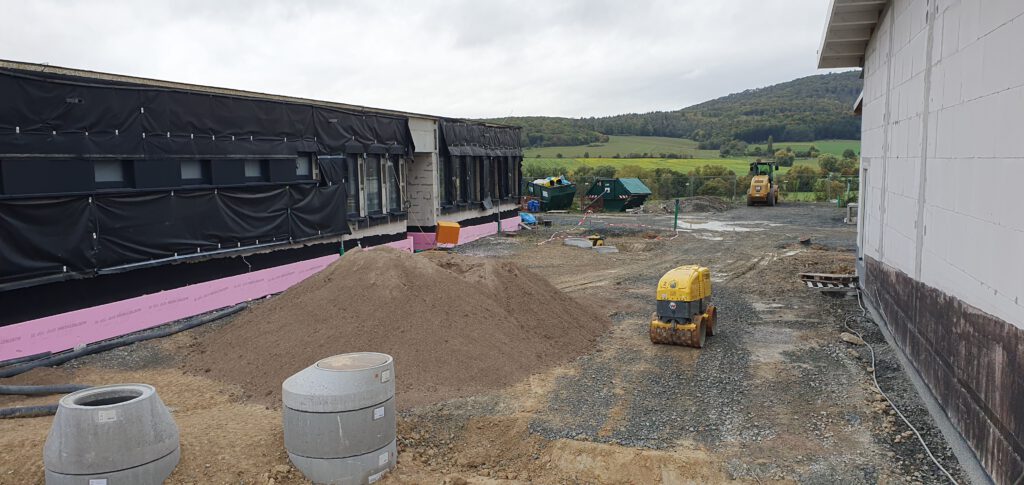 An der Drainage des Geländes wird noch immer gearbeitet (Bilder vom Okt. 2023); ist aber noch nicht fertig.