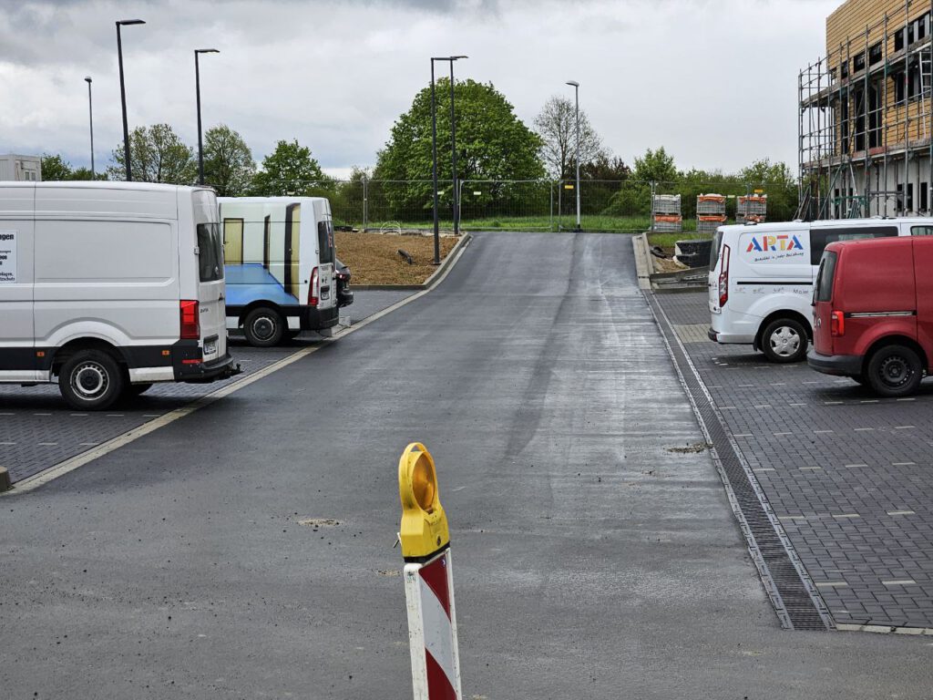 Zum Teil sind die Flächen inzwischen asphaltiert und gepflastert. Heute, 16.4.24, waren sogar etliche Handwerker vor Ort, um sich um ihre Gewerke zu kümmern. Das ist bekanntlich nicht an allen Tagen so.