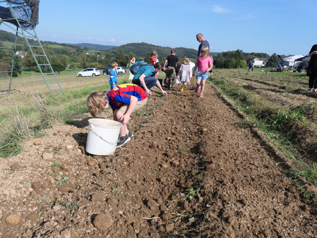 Viel Spaß daran hatten vor allem die Kinder beim Auflesen der Kartoffeln auf dem Acker am Ortsausgang Richtung Erda. Der Vorsitzende Thomas Prochazka konnte rund 40 Gäste begrüßen. Er dankte der Familie Ruppert für die Zurverfügungstellung eines Teils eines Kartoffelackers und Dominik Gattinger, Laurin und Michael Ruppert für die Vorbereitung und Durchführung des Tages.