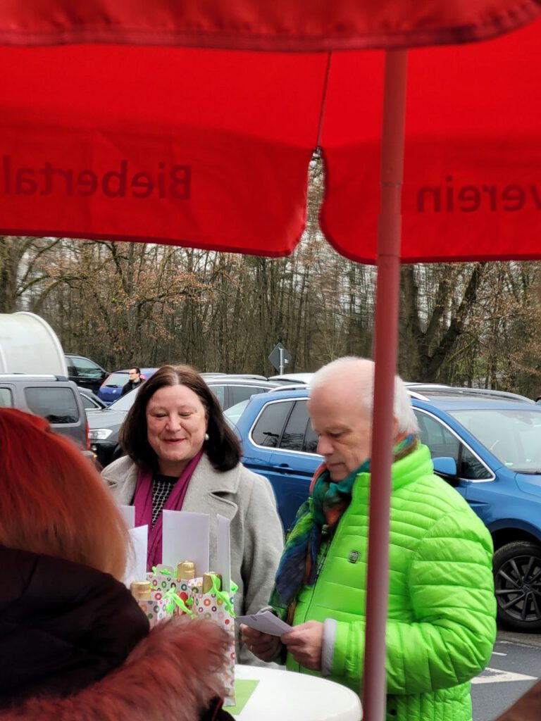 Er erwähnte, dass die Anzahl der Personen, die teilgenommen haben, sehr, sehr hoch war. Viel mehr als 1 Jahr zuvor (64 -> 163). Auch die Gewinnausgaben für die BieberTaler wurden von 600,00 € auf 1000,00 € erhöht. Insgesamt wurden im vergangenen Jahr 20,000 € an BieberTalern verkauft. Dies ist für alle Unternehmen (es sind 151, die dort mitmachen beim Gewerbeverein) ein tolles Zeichen. Es ist für alle gut, dass wir hier in Biebertal einkaufen oder auch Reparaturen durchgeführt werden. So werden die hier ansässigen Gewerbetreibenden direkt unterstützt. Im Ort kennt man sich, und man weiß evtl. wenn was nicht so gut läuft. wo derjenige sein Geschäft / Unternehmen hat. Joachim hatte noch ein kleines aber feines Gedicht von Hof Haina dabei. Dies hatte er auch noch vorgelesen. Denn Biebertal hat sehr viel zu bieten. Joachim dankte nochmal allen beteiligten die da waren, und dann wurden die Preise verteilt. Leider konnte ein Gewinner aufgrund von Krankheit nicht persönlich anwesend sein. Da die Aktion immer mehr Anklang findet, wird sie auch sehr wahrscheinlich auch im nächsten Jahr durchgeführt.